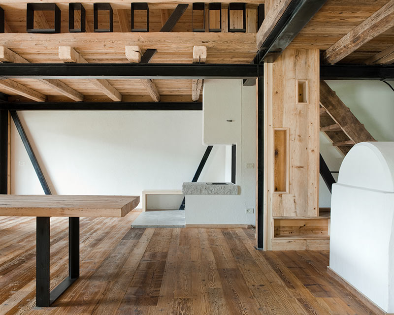 MF Design recupera, restaura e riutilizza il legno dando vita a pavimenti, boiseries, controsoffitti, travature per tetti. La crisi del 2008 ha portato l’azienda a spingersi ancor più verso l’alto.
